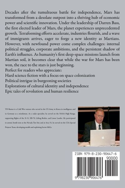 Decades after the tumultuous battle for independence, Mars has transformed from a desolate outpost into a thriving hub of economic power and scientific innovation. Under the leadership of Darren Bass, the first elected leader of Mars, the planet experiences unprecedented growth. Terraforming efforts accelerate, industries flourish, and a wave of immigrants arrives, eager to forge a new identity as Martians. However, with newfound power come complex challenges: internal political struggles, corporate ambitions, and the persistent shadow of Earth's influence. As humanity's first deep-space missions launch from Martian soil, it becomes clear that while the war for Mars has been won, the race to the stars is just beginning. Perfect for readers who appreciate: Hard science fiction with a focus on space colonization Political intrigue in burgeoning societies Explorations of cultural identity and independence Epic tales of revolution and human resilience