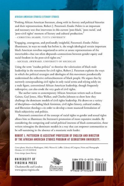 Using the term "exodus politics" to theorize the valorization of black male leadership in the movement for civil rights, Robert J. Patterson explores the ways in which the political strategies and ideologies of this movement paradoxically undermined the collective enfranchisement of black people. He argues that by narrowly conceptualizing civil rights in only racial terms and relying solely on a male figure, conventional African American leadership, though frequently redemptive, can also erode the very goals of civil rights. The author turns to contemporary African American writers such as Ernest Gaines, Gayl Jones, Alice Walker, and Charles Johnson to show how they challenge the dominant models of civil rights leadership. He draws on a variety of disciplines-including black feminism, civil rights history, cultural studies, and liberation theology-in order to develop a more nuanced formulation of black subjectivity and politics. Patterson's connection of the concept of racial rights to gender and sexual rights allows him to illuminate the literature's promotion of more expansive models. By considering the competing and varied political interests of black communities, these writers reimagine the dominant models in a way that can empower communities to be self-sustaining in the absence of a messianic male leader.