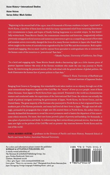 A remarkable and engaging book on some of the forgotten victims of the Cold War in East Asia... By utilizing recently declassified documents and numerous interviews, the author brings to light not only the tragedies of this 'repatriation,' but also complex political intrigues involving the governments of Japan, North Korea, the USSR, and the US. The process of the repatriation and the plight of those who arrived in North Korea reveal all the paradoxes of decolonization during Cold War conflicts, while illustrating the historical significance of this episode for contemporary tensions in East Asia... Highly recommended. CHOICE A tragic tale of dashed hopes and human betrayal that captivates like a John Grisham novel, while maintaining the dignity of a well-researched and rather provocative academic achievement... Exodus to North Korea is pathbreaking and fills an important gap in Japan-Korea relations, and offers the increasingly popular area of migration studies an interesting case study and research model. Korean Studies Review Tessa Morris-Suzuki's book is based to a great extent on previously untapped archival sources that have recently been declassified ... complemented with a number of interviews with Koreans in Japan who were part of this repatriation movement but somehow escaped or stories of those who ended up in North Korea and the misery they were or still are being put through... [She] makes a strong case in chronicling these brutal events ... of which the ... West has heard very little. I strongly recommend reading this book. Pacific Affairs The best book on Northeast Asia I have read in years. In keeping with her customary edgy and thoughtful work, Morris-Suzuki has published not simply the first substantial book in English about a remarkable recent history... She has written the only nonparticipant, scholarly account of this unbelievable story. And she has done it beautifully. Exodus deserves every award the field can offer. In clear, passionate, and compassionate prose, she describes the process, planning, and people involved in removing roughly 90,000 men, women, and children of Korean heritage from Japan to the Democratic People's Republic of Korea as part of the Great Return to the Fatherland scheme between 1959 and 1984. Journal Of Japanese Studies Morris-Suzuki's meticulous research, careful analysis, and keen reflections make for a captivating story and a solid historical monograph that engages readers emotionally and intellectually... I highly recommend this book to scholars and students of postcolonialism, war, migration, and international politics. Journal of Asian Studies In this beautifully written book Tessa Morris-Suzuki, the consummate researcher and historian, imaginatively utilizes previously untapped archival sources and numerous interviews to give us a compelling account of how state and nonstate actors irrevocably changed the lives of tens of thousands of Korean residents in Japan who found themselves caught in the vortex of contradictions engendered by the Cold War and decolonization. Both sophisticated and engaging, this is a must-read for anyone from specialist to undergraduate who is interested in the human costs of the transition to 'postcolonial' East Asia. -- Takashi Fujitani, University of California, San Diego In a lucid and engaging style, Tessa Morris-Suzuki sheds a fascinating light on a little-known piece of postwar Japanese history-the story of the Korean residents who made the one-way journey to North Korea. By intertwining the personal stories of the individual with the grand scheme of global politics, the book illuminates the human face of power politics in East Asia. -- Glenn D. Hook, University of Sheffield and National Institute of Japanese Studies