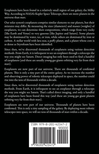 Exoplanets have been found in a relatively small region of our galaxy, the Milky Way. According to NASA's Kepler Space Telescope, there are more planets in the universe than stars. Our solar system's exoplanets comprise similar elements to our planets, but their mixtures may differ. By measuring the sizes (diameters) and masses (weights) of exoplanets, we can determine their compositions, which range from very rocky (like Earth and Venus) to very gaseous (like Jupiter and Saturn). Some planets may be dominated by water, ice, or iron, while others are dominated by iron or carbon. A stellar world with lava seas, a puffy planet, and a planet whose core is as dense as Styrofoam have been identified. Since then, we've discovered thousands of exoplanets using various detection methods. From Earth, it is infrequent to see an exoplanet through a telescope the way you might see Saturn. Direct imaging has only been used to find a handful of exoplanets (and these are usually young gas giants orbiting very far from their stars). Exoplanets are now part of our universe. There are thousands of confirmed planets. This is only a tiny part of the entire galaxy. As we increase the number and observing power of robotic telescopes deployed in space, the number could rise into the tens of thousands within a decade. Since then, we've discovered thousands of exoplanets using various detection methods. From Earth, it is infrequent to see an exoplanet through a telescope the way you might see Saturn. That's called direct imaging, and only a handful of exoplanets have been found this way (and these are young gas giant planets orbiting very far from their stars). Exoplanets are now part of our universe. Thousands of planets have been confirmed. This is only a tiny sampling of the galaxy. By deploying more robotic telescopes into space, we will see tens of thousands of stars within a decade.