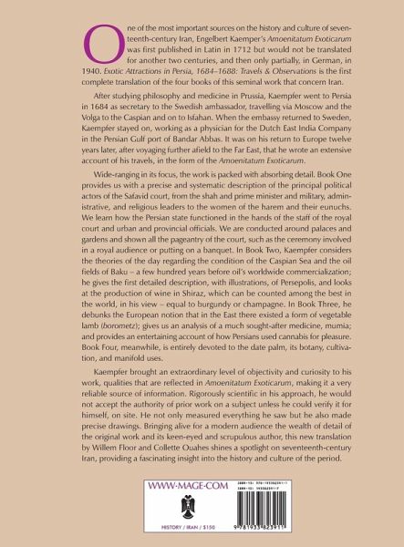 One off the most important sources on the history and culture of seventeenth-century Iran, Engelbert Kaemper's Amoenitatum Exoticarum was first published in Latin in 1712 but would not be translated for another two centuries, and then only partially, in German, in 1940.