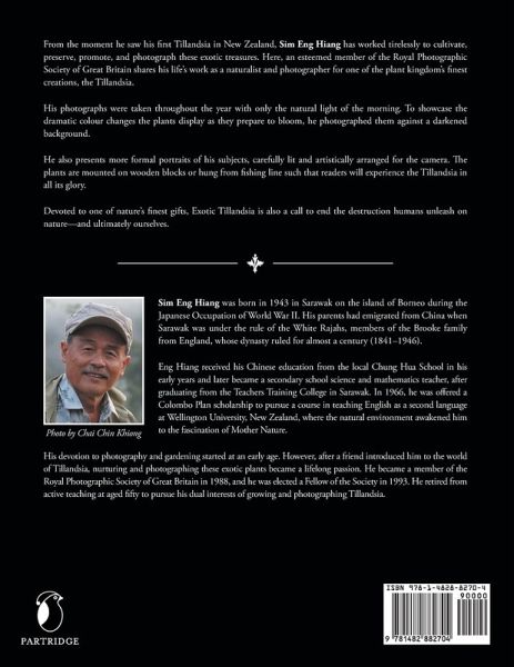 From the moment he saw his first Tillandsia in New Zealand, Sim Eng Hiang has worked tirelessly to cultivate, preserve, promote, and photograph these exotic treasures. Here, an esteemed member of the Royal Photographic Society of Great Britain shares his life's work as a naturalist and photographer for one of the plant kingdom's finest creations, the Tillandsia. His photographs were taken throughout the year with only the natural light of the morning. To showcase the dramatic colour changes the plants display as they prepare to bloom, he photographed them against a darkened background. He also presents more formal portraits of his subjects, carefully lit and artistically arranged for the camera. The plants are mounted on wooden blocks or hung from fishing line such that readers will experience the Tillandsia in all its glory. Devoted to one of nature's finest gifts, Exotic Tillandsia is also a call to end the destruction humans unleash on nature-and ultimately ourselves.