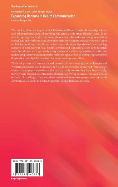 This book explores the ways in which Eastern and Western medical knowledge inform each other in the treatment of people in Asia across a wide range of health issues. To do so, it brings together health communication scholars from diverse disciplines both in Hong Kong and worldwide and combines their observations and expertise with those of clinicians working in healthcare in Asia to provide a topical portrait of the expanding horizons of healthcare in Asia. Social scientists and clinicians discuss their research and clinical practice respectively using a range of analytic approaches that include traditional qualitative and quantitative methodologies, as well as cutting-edge computer diagnostics that digitally visualize health interactions across time. The book presents an innovative and interdisciplinary investigation of Eastern and Western perspectives on healthcare in Asia. It covers topics concerned with a range of mental and physical problems that are currently confronting Asia. Importantly, the views and experiences of front line clinicians delivering patient care in Asia are also included. Accordingly, the book offers varied and innovative perspectives on health communication issues in China, Singapore, Bangladesh and Australia.