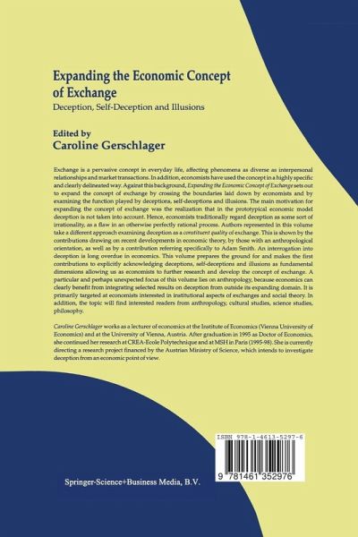 Exchange is a pervasive concept in everyday life, affecting phenomena as diverse as interpersonal relationships and market transactions. In addition, economists have used the concept in a highly specific and clearly delineated way. Against this background, Expanding the Economic Concept of Exchange sets out to expand the concept of exchange by crossing the boundaries laid down by economists and by examining the function played by deceptions, self-deceptions and illusions. The main motivation for expanding the concept of exchange was the realization that in the prototypical economic model…mehr