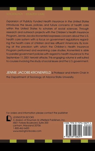 Expansion of Publicly Funded Health Insurance in the United States introduces the issues, policies, and future concerns of health care within the United States to scholars of social sciences. Through research and outreach projects with the Child Health Insurance Program, Jennie Jacobs Kronenfeld expresses concerns with the United States health care system with a focus on government regulations in conjunction with the health care of children and less affluent Americans.