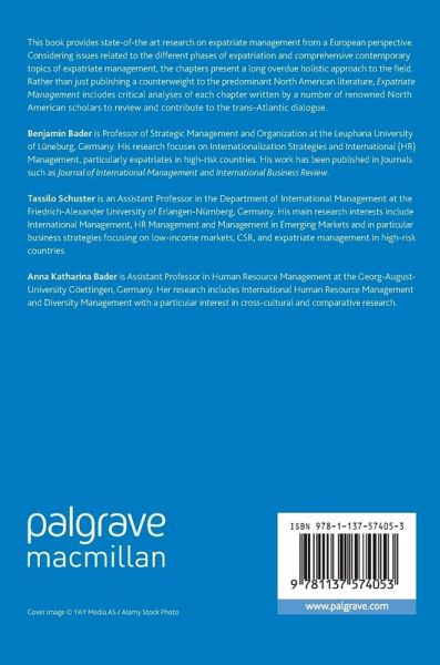 This book provides state-of-the art research on expatriate management from a European perspective. Considering issues related to the different phases of expatriation and comprehensive contemporary topics of expatriate management, the chapters present a long overdue holistic approach to the field. Rather than just publishing a counterweight to the predominant North American literature, Expatriate Management includes critical analyses of each chapter written by a number of renowned North American scholars to review and contribute to the trans-Atlantic dialogue.