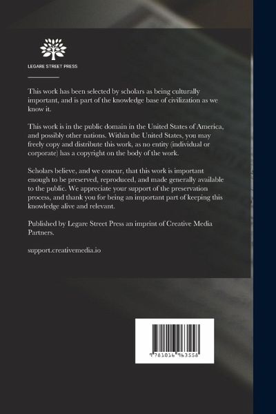 This work has been selected by scholars as being culturally important, and is part of the knowledge base of civilization as we know it. This work is in the "public domain in the United States of America, and possibly other nations. Within the United States, you may freely copy and distribute this work, as no entity (individual or corporate) has a copyright on the body of the work. Scholars believe, and we concur, that this work is important enough to be preserved, reproduced, and made generally available to the public. We appreciate your support of the preservation process, and thank you for…mehr