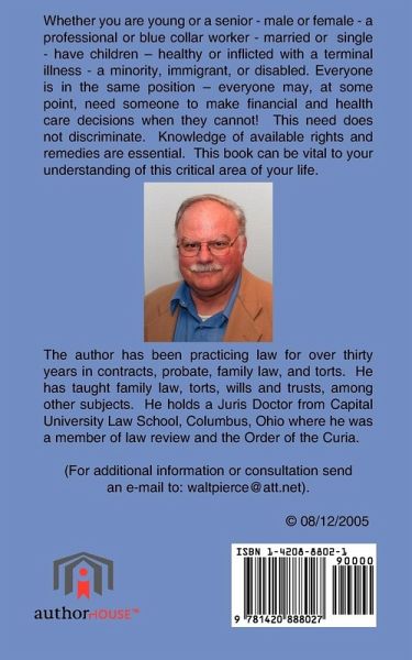 Whether you are young or a senior, whether you are male or female, whether you are a professional or blue collar worker, whether you are married, divorced or single, whether you have children or not, whether you are healthy or inflicted with a terminal illness, whether you are a minority, immigrant, or disabled, each of us can find ourselves in the same position - needing someone to make financial and health decisions for us because we cannot. This need does not discriminate. Knowledge of your rights and remedies are essential. This book is vital to your understanding of this critical area of your life. No one knows if or when tragedy will strike; but if it does, be prepared by ensuring your family has the basic documents - a Will - a Living Will - a Durable Power of Attorney for Health Care - a Durable Power of Attorney for Financial Matters for each spouse. After reading this book, you will be in a better position to assess your individual situation and seek professional help to draft these and other legal documents that will give you peace of mind.