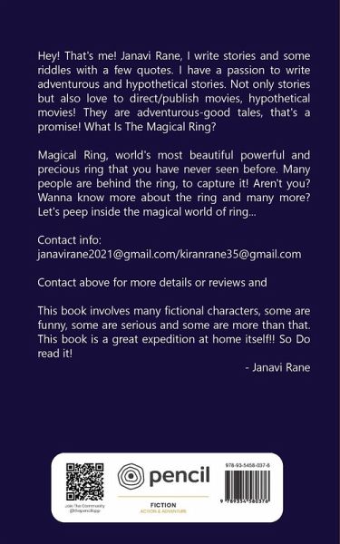 Hey! That's me! Janavi Rane, I write stories and some riddles with a few quotes. I have a passion to write adventurous and hypothetical stories. Not only stories but also I love to direct/publish movies, hypothetical movies! They are adventurous-good tales, that's a promise! What Is The Magical Ring? Magical Ring, world's most beautiful powerful and precious ring that you have never seen before. Many people are behind the ring, to capture it! Aren't you? Wanna know more about the ring and many more? Let's peep inside the magical world of ring...