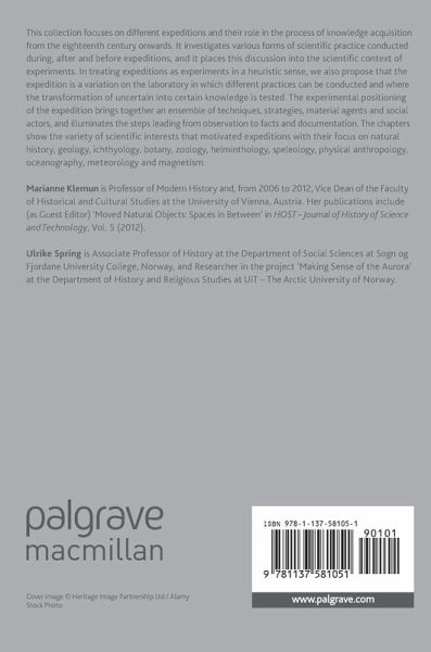 This collection focuses on different expeditions and their role in the process of knowledge acquisition from the eighteenth century onwards. It investigates various forms of scientific practice conducted during, after and before expeditions, and it places this discussion into the scientific context of experiments. In treating expeditions as experiments in a heuristic sense, we also propose that the expedition is a variation on the laboratory in which different practices can be conducted and where the transformation of uncertain into certain knowledge is tested. The experimental positioning of the expedition brings together an ensemble of techniques, strategies, material agents and social actors, and illuminates the steps leading from observation to facts and documentation. The chapters show the variety of scientific interests that motivated expeditions with their focus on natural history, geology, ichthyology, botany, zoology, helminthology, speleology, physical anthropology, oceanography, meteorology and magnetism.