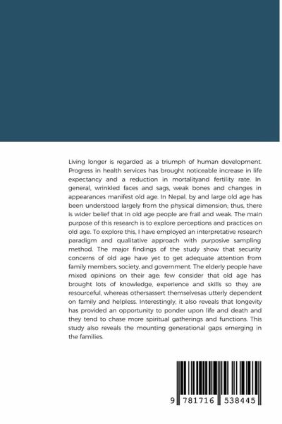 Living longer is regarded as a triumph of human development. Progress in health services has brought noticeable increase in life expectancy and a reduction in mortalityand fertility rate. In general, wrinkled faces and sags, weak bones and changes in appearances manifest old age. In Nepal, by and large old age has been understood largely from the physical dimension; thus, there is wider belief that in old age people are frail and weak. The main purpose of this research is to explore perceptions and practices on old age. To explore this, I have employed an interpretative research paradigm and qualitative approach with purposive sampling method. The major findings of the study show that security concerns of old age have yet to get adequate attention from family members, society, and government. The elderly people have mixed opinions on their age: few consider that old age has brought lots of knowledge, experience and skills so they are resourceful, whereas othersassert themselvesas utterly dependent on family and helpless. Interestingly, it also reveals that longevity has provided an opportunity to ponder upon life and death and they tend to chase more spiritual gatherings and functions. This study also reveals the mounting generational gaps emerging in the families.