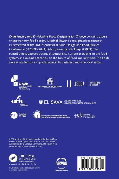 Experiencing and Envisioning Food: Designing for Change contains papers on gastronomy, food design, sustainability, and social practices research as presented at the 3rd International Food Design and Food Studies Conference (EFOOD 2022, Lisbon, Portugal, 28-30 April 2022).