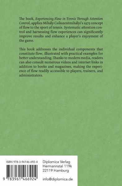 The book, "Experiencing Flow in Tennis Through Attention Control", applies Mihály Csíkszentmihályi's 1975 concept of flow to the sport of tennis. Systematic attention control and harnessing flow experiences can significantly improve results and enhance a players' enjoyment of the game. This book addresses the individual components that constitute flow, illustrated with practical examples for better understanding. Thanks to modern media, readers can also consult numerous videos and internet links in addition to books and magazines, making the experience of flow readily accessible to players, trainers, and administrators.