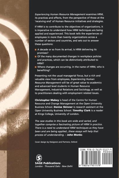 Foreword - John Monks PART ONE:INTRODUCTION Experiencing HRM - Timothy Clark, Denise Skinner and Christopher Mabey The Importance of the Inside Story The Morality of HRM - Karen Legge PART TWO: QUALITY AND CULTURE CHANGE PROGRAMMES Empowerment through Quality Management - Chris Rees Employee Accounts from Inside a Bank, a Hotel and Two Factories Total Quality Management - Linda Glover and Deborah Fitzgerald Moore Shop Floor Perspectives Changing Corporate Culture - Graeme Martin, Phil Beaumont and Harry Staines Paradoxes and Tensions in Local Authority PART THREE: THE PERCEIVED IMPACT OF HRM ON PRODUCTIVITY AND PERFORMANCE Training and Development at an Agro Chemical Plant - Jason Heyes View from the Bridge and Life on Deck - Aisling Kelly and Kathy Monks Contrasts and Contradictions in Performance-Related Pay Culture Change within a Regional Business Network - Julia Connell and Suzanne Ryan PART FOUR: HRM PROVIDING CHOICES AND OPPORTUNITIES Strategic Integration and Industrial Relations in Greenfield Sites - Patrick Gunnigle and Michael Morley From Public Sector Employees to Portfolio Workers - Mary Mallon Pioneers of New Careers? Diversity Climates and Gendered Cultures - Paul Iles, Elisabeth Wilson and Deborah Hicks-Clarke A Cross Sector Analysis A Trail of Clues for Graduate Trainees - Diane Preston and Cathy Hart Inside or Outside HRM? Lateral Learning in Two Voluntary Sector Organizations - Rona S Beattie and Marilyn McDougall PART FIVE: CONCLUSION Getting the Story Straight - Christopher Mabey, Timothy Clark and Denise Skinner