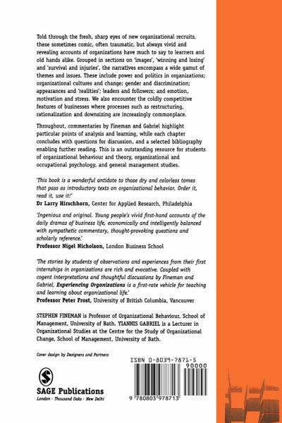`The stories by students of observations and experiences from their first internships in organizations are rich and evocative. Coupled with cogent interpretations and thoughtful discussions by Fineman and Gabriel, Experiencing Organizations is a first-rate vehicle for teaching and learning about organizational life' - Peter Frost, University of British Columbia, Vancouver