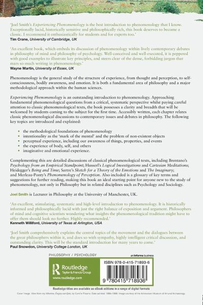 'Joel Smith's Experiencing Phenomenology is the best introduction to phenomenology that I know. Exceptionally lucid, historically sensitive and philosophically rich, this book deserves to become a classic. I recommend it enthusiastically for students and for experts too.' - Tim Crane, University of Cambridge, UK