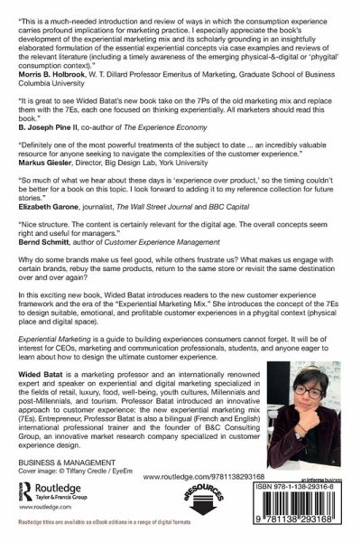 This book combines gives readers an overview of: the origins and the rise of the customer experience logic, the 7Es (Experience, Exchange, Extension, Emphasis, Empathy, Emotional touchpoints, Emic/Etic process) of the new experiential marketing mix, and the challenges for the future.