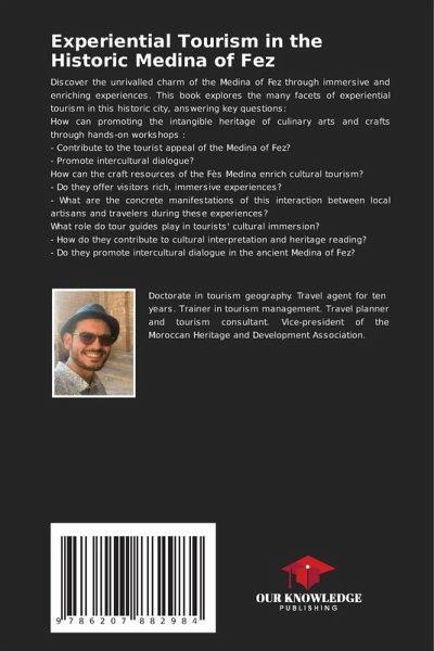 Discover the unrivalled charm of the Medina of Fez through immersive and enriching experiences. This book explores the many facets of experiential tourism in this historic city, answering key questions:How can promoting the intangible heritage of culinary arts and crafts through hands-on workshops :- Contribute to the tourist appeal of the Medina of Fez?- Promote intercultural dialogue?How can the craft resources of the Fès Medina enrich cultural tourism?- Do they offer visitors rich, immersive experiences?- What are the concrete manifestations of this interaction between local artisans and travelers during these experiences?What role do tour guides play in tourists' cultural immersion?- How do they contribute to cultural interpretation and heritage reading?- Do they promote intercultural dialogue in the ancient Medina of Fez?