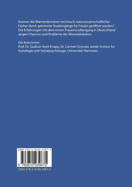 Können die Männerdomänen technisch-naturwissenschaftlicher Fächer durch getrennte Studiengänge für Frauen geöffnet werden? Die Erfahrungen mit dem ersten Frauenstudiengang in Deutschland zeigen Chancen und Probleme der Monoedukation.