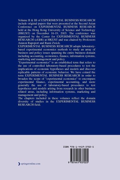 PREFACE Amnon Rapoport University of Arizona and Hong Kong University of Science and Technology Rami Zwick Hong Kong University of Science and Technology This volume (and volume III) includes papers that were presented and discussed at the Second Asian Conference on Experimental Business Research held at the Hong Kong University of Science and Technology (HKUST) on December 16 19, 2003. The conference was a follow up to the ?rst conference that was held on December 7 10, 1999, the papers of which were published in the ?rst volume (Zwick, Rami and Amnon Rapoport (Eds.), (2002) Experimental Business Research. Kluwer Academic Publishers: Norwell, MA and Dordrecht, The Netherlands). The conference was organized by the Center for Experimental Business Research (cEBR) at HKUST and was chaired by Amnon Rapoport and Rami Zwick. The program committee members were Paul Brewer, Kenneth Shunyuen Chan, Soo Hong Chew, Sudipto Dasgupta, Richard Fielding, James R. Frederickson, Gilles Hilary, Ching- Chyi Lee, Siu Fai Leung, Ling Li, Francis T Lui, Sarah M Mcghee, Fang Fang Tang, Winton Au Wing Tung, and Raymond Yeung. The papers presented at the conference and a few others that were solicited especially for this volume contain original research on individual and interactive decision behavior in various branches of business research including, but not limited to, economics, marketing, management, ?nance, and accounting.