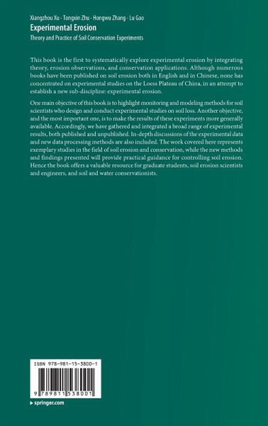 One main objective of this book is to highlight monitoring and modeling methods for soil scientists who design and conduct experimental studies on soil loss. Another objective, and the most important one, is to make the results of these experiments more generally available. Accordingly, we have gathered and integrated a broad range of experimental results, both published and unpublished. In-depth discussions of the experimental data and new data processing methods are also included. The work covered here represents exemplary studies in the field of soil erosion and conservation, while the new methods and findings presented will provide practical guidance for controlling soil erosion. Hence the book offers a valuable resource for graduate students, soil erosion scientists and engineers, and soil and water conservationists.