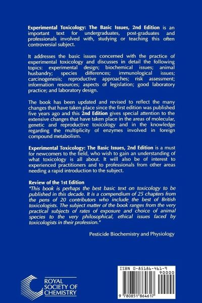 Experimental Toxicology is an important text for undergraduates, post-graduates and professionals involved with studying or teaching this often controversial subject. It addresses the basic issues concerned with the practice of experimental toxicology and discusses in detail the following topics: experimental design; biochemical issues; animal husbandry; species differences; immunological issues; carcinogenesis; reproductive approaches; statistics; genetics; in vitro and molecular approaches; risk assessment; information resources; aspects of legislation; good laboratory practice; and laboratory design. The book has been updated and revised to reflect the many changes that have taken place since the first edition was published five years ago and this 2nd Edition gives special attention to the extensive changes that have taken place in the areas of molecular, genetic and reproductive toxicology and in the knowledge regarding the multiplicity of enzymes involved in foreign compound metabolism. Experimental Toxicology is a must for newcomers to the field who wish to gain an understanding of what toxicology is all about. It will also be of interest to experienced practitioners and to professionals from other areas who need a rapid introduction to the subject.