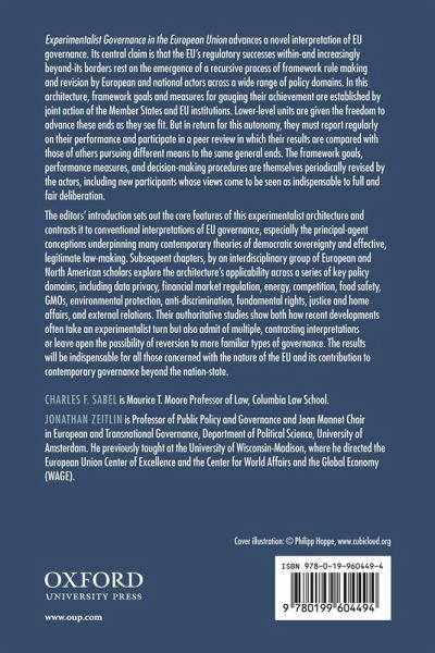 Experimentalist Governance in the European Union advances a novel interpretation of EU governance. Its central claim is that the EU's regulatory successes within-and increasingly beyond-its borders rest on the emergence of a recursive process of framework rule making and revision by European and national actors across a wide range of policy domains. In this architecture, framework goals and measures for gauging their achievement are established by joint action of the Member States and EU institutions. Lower-level units are given the freedom to advance these ends as they see fit. But in return for this autonomy, they must report regularly on their performance and participate in a peer review in which their results are compared with those of others pursuing different means to the same general ends. The framework goals, performance measures, and decision-making procedures are themselves periodically revised by the actors, including new participants whose views come to be seen as indispensable to full and fair deliberation. The editors' introduction sets out the core features of this experimentalist architecture and contrasts it to conventional interpretations of EU governance, especially the principal-agent conceptions underpinning many contemporary theories of democratic sovereignty and effective, legitimate law making. Subsequent chapters by an interdisciplinary group of European and North American scholars explore the architecture's applicability across a series of key policy domains, including data privacy, financial market regulation, energy, competition, food safety, GMOs, environmental protection, anti-discrimination, fundamental rights, justice and home affairs, and external relations. Their authoritative studies show both how recent developments often take an experimentalist turn but also admit of multiple, contrasting interpretations or leave open the possibility of reversion to more familiar types of governance. The results will be indispensable for all those concerned with the nature of the EU and its contribution to contemporary governance beyond the nation-state.