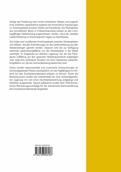 Hierzu wurden experimentelle und numerische Untersuchungen an lochrandgestützten Platten durchgeführt, um die Tragfähigkeit im Hinblick auf den Durchstanzwiderstand erfassen zu können. Darauf aufbauend wurden mittels FEM-Simulationen Bemessungsvorschläge für die rechnerische Nachweisführung des Durchstanzwiderstands hergeleitet.