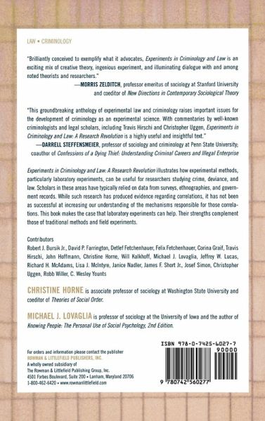 1 Foreword 2 Why Experiment Now? Coordinating Research Methods to Accelerate Innovation in Law, Crime, and Deviance 3 Gottfredson and Hirschi in the Lab: An Experimental Test of the General Theory of Crime 4 Deterring Deviance: Rationality and Self-Control 5 Comment: Self-Control in the Lab 6 Norms and Neighborhoods: Explaining Variation in Informal Control 7 The Effects of Status and Peer Support on the Justification and Approval of Deviance 8 Comment: Social Influence in the Lab 9 Prosecutorial Misconduct in Serious Cases: Theory and Design of a Laboratory Experiment 10 Constructing Focal Points through Legal Expression: An Experimental Test 11 Comment: Exploring the LImits of Law 12 Whither Experiments in Crime, Deviance and Law? 13 Criminology as an Experimental Science 14 Thinking Experimental