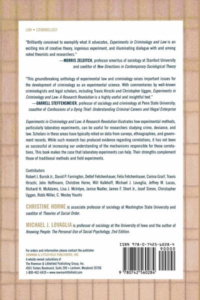 Experiments in Criminology and Law: A Research Revolution illustrates how experimental methods, particularly laboratory experiments, can be useful for researchers studying crime, deviance, and law. Scholars in these areas have typically relied on data from surveys, ethnographies, and government records. This book makes the case that laboratory experiments can help. The strengths of these experiments complement those of traditional methods and field experiments.