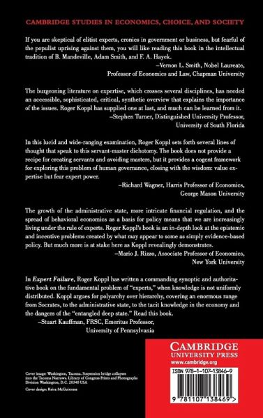 The humble idea that experts are ordinary human beings leads to surprising conclusions about how to get the best possible expert advice. All too often, experts have monopoly power because of licensing restrictions or because they are government bureaucrats protected from both competition and the consequences of their decisions. This book argues that, in the market for expert opinion, we need real competition in which rival experts may have different opinions and new experts are free to enter. But the idea of breaking up expert monopolies has far-reaching implications for public administration, forensic science, research science, economics, America's military-industrial complex, and all domains of expert knowledge. Roger Koppl develops a theory of experts and expert failure, and uses a wide range of examples - from forensic science to fashion - to explain the applications of his theory, including state regulation of economic activity.