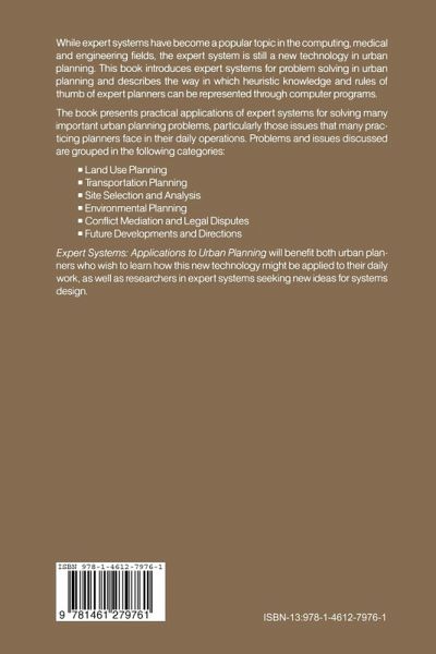 ***e FACHGEBIET*** Mathematical Geology, Computer Applications, Artificial Intelligence, Urban Economics and Regional Economics ***INTERESSENTENGRUPPE*** Of interest to Urban and Regional planners, civil engineers, geographers; computer scientists; operations researchers; landscape architects; and advanced students in the above disciplines.- Level: Technical Book, Monograph ***URHEBER*** T.J. Kim, University of Illinois, Champaign, IL; L.L. Wiggins, Massachusetts Institute of Technology, Cambridge, MA; J.R. Wright, Purdue University, Lafayette, IN (Eds.) ***TITEL*** Expert Systems: Applications to Urban Planning ***BIBLIOGRAPHISCHE-ANGABEN*** 1990. XIV, 268 pp. 48 figs. Hardcover DM 78,- ISBN 3-540-97171-8 ***LANGTEXT*** While expert systems have become a popular topic in the computing, medical and engineering fields, the expert system is still a new technology in urban planning. This book introduces expert systems for problem solving in urban planning and describes the way in which heuristic knowledge and rules of thumb of expert planners can be represented through computer programs. The book presents practical applications of expert systems for solving many important urban planning problems, particularly those issues that many practicing planners face in their daily operations. Problems and issues discussed are grouped in the following categories: - Land Use Planning - Transportation Planning - Site Selection and Analysis - Environmental Planning - Conflict Mediation and Legal Disputes - Future Developments and Directions Expert Systems: Applications to Urban Planning will benefit both urban planners who wish to learn how this new technology might be applied to their daily work as well as researchers in expert systems seeking new ideas for systems design.