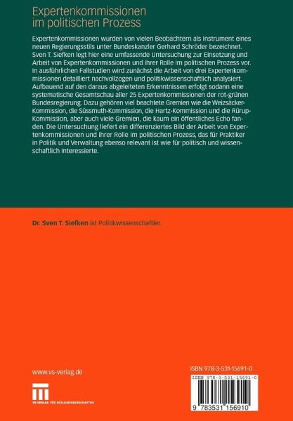 "Was bisher fehlte, was eine übergeordnete Betrachtung des Instruments der Politikberatung, welche Schlussfolgerungen für die Rolle von Expertenkommissionen im politischen Prozess erlauben würde. An diesem Manko setzt Sven T. Siefken mit seiner Dissertation an. Das Ergebnis seiner Forschung ist eine empirisch fundierte, politikfelderübergreifende Analyse der Bedeutung politikberatender Expertengremien im politischen Prozess in den Jahren der rot-grünen Koalition von 1998 bis 2005. [...] Mit der grundlegenden Analyse dieses Instruments wird etwas Licht in das immer komplexere Feld der Politikberatung geworfen." PVS - Politische Vierteljahresschrift, 03/2008