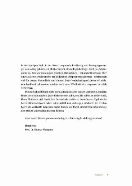 Immer mehr Menschen leiden unter Bluthochdruck, allein in Deutschland sind es über 20 Millionen. Zu viel Salz und zu wenig Bewegung sind die Übeltäter, aber auch das Alter, familiäre Veranlagung und hormonelle Umstellungen wie die Menopause. Mit Bluthochdruck einher geht ein erhöhtes Risiko für Schlaganfälle, Herzmuskelschwäche, Demenz, Impotenz und Dialyse. Das klingt besorgniserregend, aber mit dem richtigen Wissen über Ihre Erkrankung können Sie sich und Ihre Gesundheit schützen. Orientierung bietet der Kardiologe Prof. Dr. Thomas Mengden, der zu den bekanntesten Bluthochdruck-Experten in Deutschland zählt.