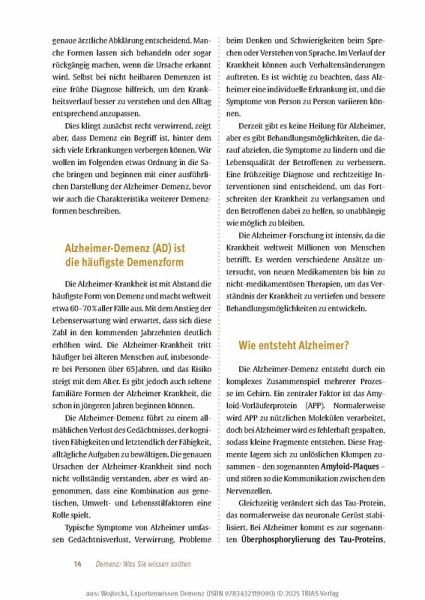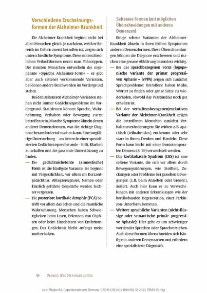 - Gut leben mit Demenz: Konkrete Tipps zur Alltagsbewältigung auch bei fortgeschrittener Erkrankung.
