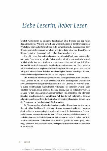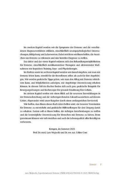 Einen wichtigen Termin vergessen, den Herd nicht ausgeschaltet oder eine Bekannte auf der Straße nicht wiedererkannt - eine Demenz beginnt oft schleichend. Wenn die Vergesslichkeit immer deutlicher zutage tritt, gehen damit große Ängste und Sorgen einher. Betroffene fürchten den Verlust ihrer Selbstständigkeit. Angehörige finden sich plötzlich in der Rolle eines Pflegenden wieder, was ihr Leben grundlegend auf den Kopf stellen kann. Die Herausforderungen sind immens, müssen aber nicht alleine bewältigt werden. Die Demenz-Experten Prof. Dr. med. Lars Wojtecki und Celine Cont erklären einfühlsam die unterschiedlichen Formen von Demenz und zeigen die neuesten Forschungsergebnisse und modernsten Therapien auf.