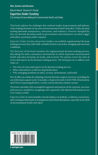 The first part of the book examines the organizational decision making process, describing the often-contentious environment in which important environmental health and safety decisions are made, and received. The authors review the roles of actors and experts in the decision making process. The book goes on to address such topics as: