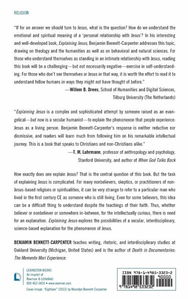 Preface: A Problem-Driven Life Acknowledgments Introduction: The Problem of Explaining Jesus Part I Chapter 1: Philosophies of Being a Person Like Jesus: Metaphysicalist, Dualist, Physicalist Chapter 2: Discourse About Jesus: From the Vernacular to the Scholarly and Scientific Chapter 3: Discourse About Jesus in Historical Scholarship Part II Chapter 4: A Turn to the Sciences: An Evolutionary, Physicalist Context for Explaining Jesus Chapter 5: "Jesus" as a "Person" with Special Features: Cognitive Psychological Applications Toward Explaining Jesus Chapter 6: Experiencing "Jesus" as Cultivated Social Practice: Behavioral Aspects of the Phenomenon Chapter 7: Toward Explaining a "Personal Relationship with Jesus": Isolating and Studying a Phrase Part III Chapter 8: as a Sign in Complex Systems Chapter 9: as Glocal Sign of the People Chapter 10: Critiqued and Appropriated Chapter 11: The Hope of Resurrection: Beliefs, Fantasies, Misconceptions, Present-day Science, Speculation, Science Fiction, and Delusion Chapter 12: Lessons Learned, Including All That Is Not Explained, and Final Remarks References About the Author