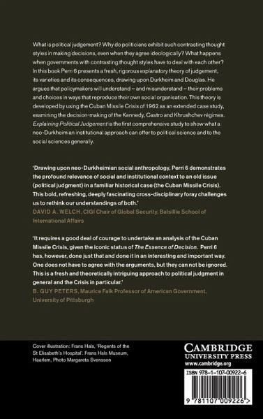 'Drawing upon neo-Durkheimian social anthropology, Perri 6 demonstrates the profound relevance of social and institutional context to an old issue (political judgment) in a familiar historical case (the Cuban Missile Crisis). This bold, refreshing, deeply fascinating cross-disciplinary foray challenges us to rethink our understandings of both.' David A. Welch, CIGI Chair of Global Security, Balsillie School of International Affairs