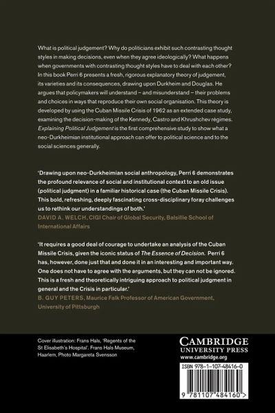 What is political judgement? Why do politicians exhibit such contrasting thought styles in making decisions, even when they agree ideologically? What happens when governments with contrasting thought styles have to deal with each other? In this book Perri 6 presents a fresh, rigorous explanatory theory of judgement, its varieties and its consequences, drawing upon Durkheim and Douglas. He argues that policy makers will understand - and misunderstand - their problems and choices in ways that reproduce their own social organisation. This theory is developed by using the Cuban Missile Crisis of 1962 as an extended case study, examining the decision-making of the Kennedy, Castro and Khrushchev regimes. Explaining Political Judgement is the first comprehensive study to show what a neo-Durkheimian institutional approach can offer to political science and to the social sciences generally.