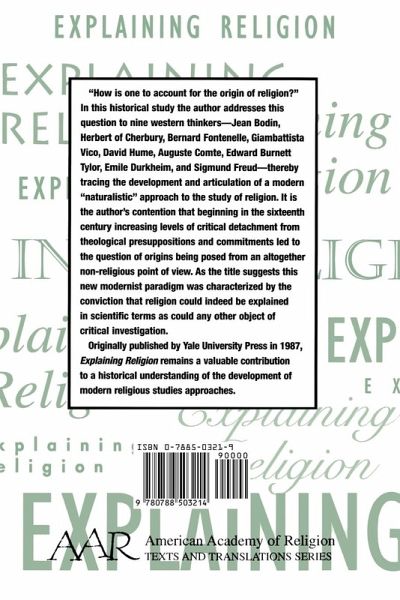 J. Samuel Preus traces the development and articulation of a modern "naturalistic" approach to the study of religion by examining ideas about the origin of religion in the works of nine western thinkers: Jean Bodin, Herbert of Cherbury, Bernard Fontenelle, Giambattista Vico, David Hume, Auguste Comte, Edward Brunett Tylor, Emile Durkheim, and Sigmund Freud. He argues that beginning in the sixteenth century increasing critical detachment from theological presuppositions and commitments made it possible for the question of origins to be posed from an altogether non-religious point of view. This new modernist paradigm was characterized by the conviction that religion could be explained in scientific terms, like any other object of critical investigation.