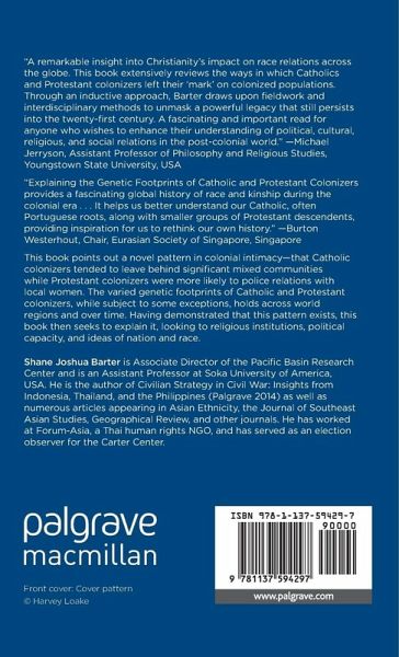"Explaining the Genetic Footprints of Catholic and Protestant Colonizers provides a fascinating global history of race and kinship during the colonial era . . . It helps us better understand our Catholic, often Portuguese roots, along with smaller groups of Protestant descendents, providing inspiration for us to rethink outown history." - Burton Westerhout, Chair, Eurasian Society of Singapore, Singapore