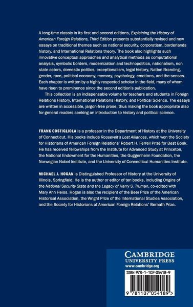 A longtime classic in its first and second editions, Explaining the History of American Foreign Relations, 3rd edition presents substantially revised and new essays on traditional themes such as national security, corporatism, borderlands history, and international relations theory. The book also highlights such innovative conceptual approaches and analytical methods as computational analysis, symbolic borders, modernization and technopolitics, nationalism, non-state actors, domestic politics, exceptionalism, legal history, nation branding, gender, race, political economy, memory, psychology, emotions, and the senses. Each chapter is written by a highly respected scholar in the field, many of whom have risen to prominence since the second edition's publication. This collection is an indispensable volume for teachers and students in foreign relations history, international relations history, and political science. The essays are written in accessible, jargon-free prose, thus also making the book appropriate for general readers seeking an introduction to history and political science.