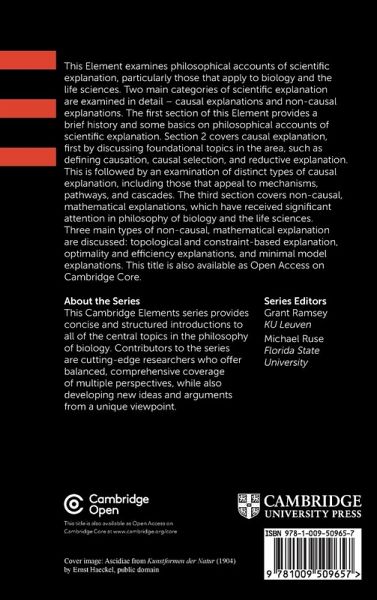 This Element examines philosophical accounts of scientific explanation, particularly those that apply to biology and the life sciences. Two main categories of scientific explanation are causal explanations and non-causal explanations. This title is also available as Open Access on Cambridge Core.