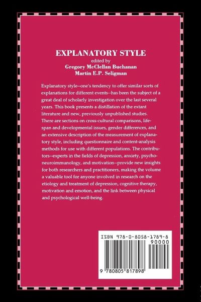 This is the first work to condense the large literature on explanatory style -- one's tendency to offer similar sorts of explanations for different events. This cognitive variable has been related to psychopathology, physical health, achievement and success. Compiled by experts in the fields of depression, anxiety, psychoneuroimmunology and motivation, this volume details our current level of understanding, outlines gaps in our knowledge, and discusses the future directions of the field. Data from a vast number of studies are presented, including results from studies not previously reported. Coverage includes sections on cross-cultural comparisons, life-span and development issues, and gender differences; and an extensive description of the measurement of explanatory style offering questionnaire and content-analysis methods for children, college populations and adults. This work is thus a valuable tool for anyone involved in research on the etiology and treatment of depression, cognitive therapy, motivation and emotion, and the link between physical and psychological well-being.