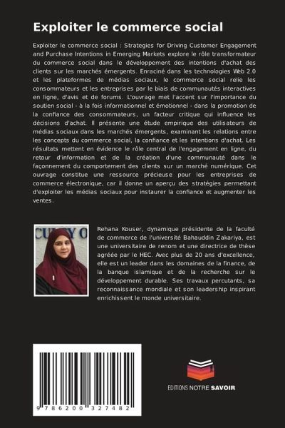 Exploiter le commerce social : Strategies for Driving Customer Engagement and Purchase Intentions in Emerging Markets explore le rôle transformateur du commerce social dans le développement des intentions d'achat des clients sur les marchés émergents. Enraciné dans les technologies Web 2.0 et les plateformes de médias sociaux, le commerce social relie les consommateurs et les entreprises par le biais de communautés interactives en ligne, d'avis et de forums. L'ouvrage met l'accent sur l'importance du soutien social - à la fois informationnel et émotionnel - dans la promotion de la confiance des consommateurs, un facteur critique qui influence les décisions d'achat. Il présente une étude empirique des utilisateurs de médias sociaux dans les marchés émergents, examinant les relations entre les concepts du commerce social, la confiance et les intentions d'achat. Les résultats mettent en évidence le rôle central de l'engagement en ligne, du retour d'information et de la création d'une communauté dans le façonnement du comportement des clients sur un marché numérique. Cet ouvrage constitue une ressource précieuse pour les entreprises de commerce électronique, car il donne un aperçu des stratégies permettant d'exploiter les médias sociaux pour instaurer la confiance et augmenter les ventes.
