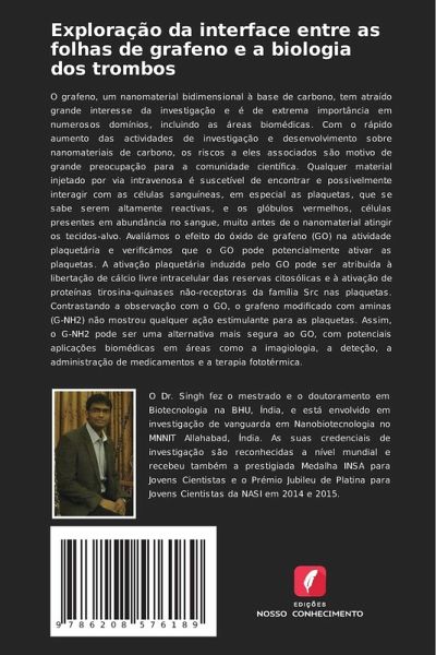 O grafeno, um nanomaterial bidimensional à base de carbono, tem atraído grande interesse da investigação e é de extrema importância em numerosos domínios, incluindo as áreas biomédicas. Com o rápido aumento das actividades de investigação e desenvolvimento sobre nanomateriais de carbono, os riscos a eles associados são motivo de grande preocupação para a comunidade científica. Qualquer material injetado por via intravenosa é suscetível de encontrar e possivelmente interagir com as células sanguíneas, em especial as plaquetas, que se sabe serem altamente reactivas, e os glóbulos vermelhos, células presentes em abundância no sangue, muito antes de o nanomaterial atingir os tecidos-alvo. Avaliámos o efeito do óxido de grafeno (GO) na atividade plaquetária e verificámos que o GO pode potencialmente ativar as plaquetas. A ativação plaquetária induzida pelo GO pode ser atribuída à libertação de cálcio livre intracelular das reservas citosólicas e à ativação de proteínas tirosina-quinases não-receptoras da família Src nas plaquetas. Contrastando a observação com o GO, o grafeno modificado com aminas (G-NH2) não mostrou qualquer ação estimulante para as plaquetas. Assim, o G-NH2 pode ser uma alternativa mais segura ao GO, com potenciais aplicações biomédicas em áreas como a imagiologia, a deteção, a administração de medicamentos e a terapia fototérmica.