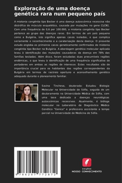 A miotonia congénita tipo Becker é uma doença autossómica recessiva não distrófica do músculo esquelético, causada por mutações no gene CLCN1. Com uma frequência de 0,6 por 100.000, a miotonia congénita tipo Becker pertence ao grupo das doenças raras. Em termos de um país pequeno como a Bulgária, isto significa apenas casos isolados, o que complica seriamente o reconhecimento e a caraterização desta doença. O presente estudo engloba os primeiros casos geneticamente confirmados de miotonia congénita tipo Becker na Bulgária. A abordagem genética molecular aplicada levou à identificação das mutações causadoras da doença em 78% das famílias testadas. Além disso, foram estudadas duas presumíveis regiões endémicas, o que levou à identificação de uma frequência significativa de portadores em ambas as regiões de interesse. Estes resultados são de importância crucial para os habitantes das regiões correspondentes da Bulgária em termos de rastreio oportuno e aconselhamento genético adequado durante o planeamento familiar.