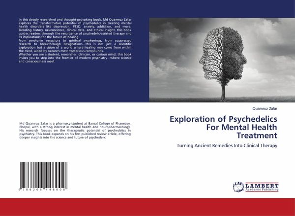 In this deeply researched and thought-provoking book, Md Quamruz Zafar explores the transformative potential of psychedelics in treating mental health disorders like depression, PTSD, anxiety, addiction, and more. Blending history, neuroscience, clinical data, and ethical insight, this book guides readers through the resurgence of psychedelic-assisted therapy and its implications for the future of healing.From serotonin receptors to spiritual awakenings, from suppressed research to breakthrough designations-this is not just a scientific exploration but a vision of a world where healing may come from within the mind, aided by nature's most mysterious compounds.Whether you are a student, researcher, clinician, or curious mind, this book invites you to step into the frontier of modern psychiatry-where science and consciousness meet.