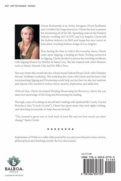 Cherie Bodenstab, is an artist, designer, drum facilitator, and certified Qigong instructor. Cherie has had a passion for drumming all her life. After spending years in the fashion industry, working 24/7 in NYC and Los Angeles, Cherie left the fashion industry in 2003 and began her new career in education, teaching fashion design in Los Angeles. Now having the time to relieve the everyday stress, Cherie came upon Qigong, a healing art form. Feeling connected to Qigong, Cherie decided to pursue her teaching certificate with Lee Holden, Qigong master in Santa Cruz. She has trained with other masters, such as Master Mantak Chia and Dr. Effie Chow. Not sure where this would take her, Cherie found UpBeat Drum Circle with Christine Stevens's facilitator workshop. The workshop hit a note with Cherie, and she knew that incorporating Qigong and Drumming would help not just her but also her students and anyone who needed to reduce stress, anxiety, depression, and addiction. With all that, Cherie developed Healing Drumming for Recovery, where she can share her knowledge of Qigong and drumming for healing. Through years of working on herself and working with spiritual life coach Crystal Bertolacci (a.k.a. "Comfy Crystal"), Cherie has spent many days and nights writing and sketching in journals to help discover herself. "The journal is a great way to look back at your life and see how much you have changed," states Cherie.